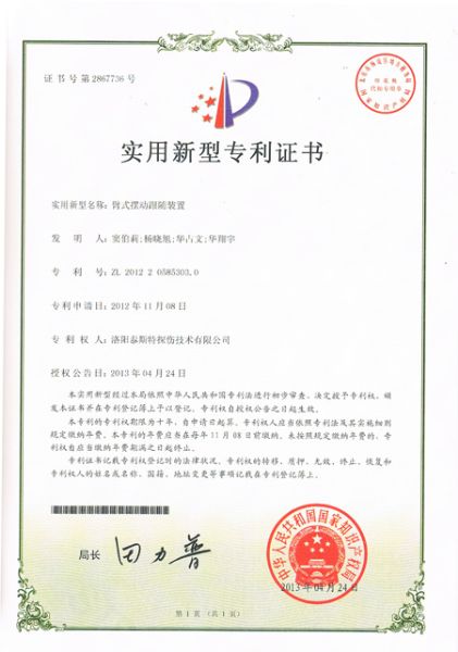重視知識產(chǎn)權,不斷進行創(chuàng)新,憑著以技術行業(yè)的理念,TST公司又獲得了由知識產(chǎn)權局頒發(fā)的四項發(fā)明利證書,分別是兩項實用新型:臂式擺動跟隨裝置、種便攜式鋼絲繩損傷探測裝置。兩項外觀利:鋼絲繩探傷儀(防爆可攜帶型)、鋼絲繩探傷儀(攜帶式大直徑型)。