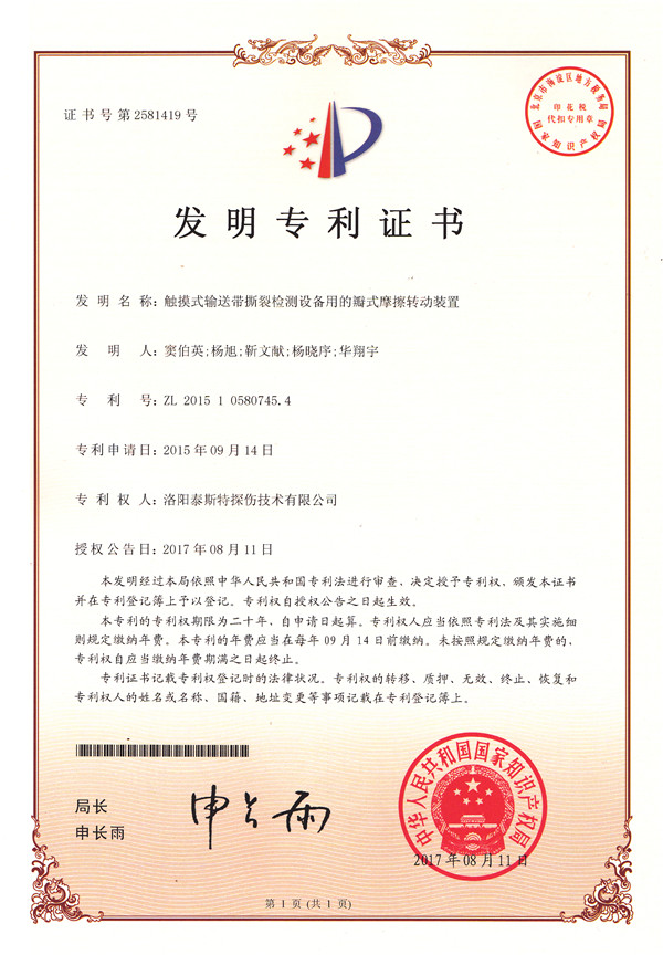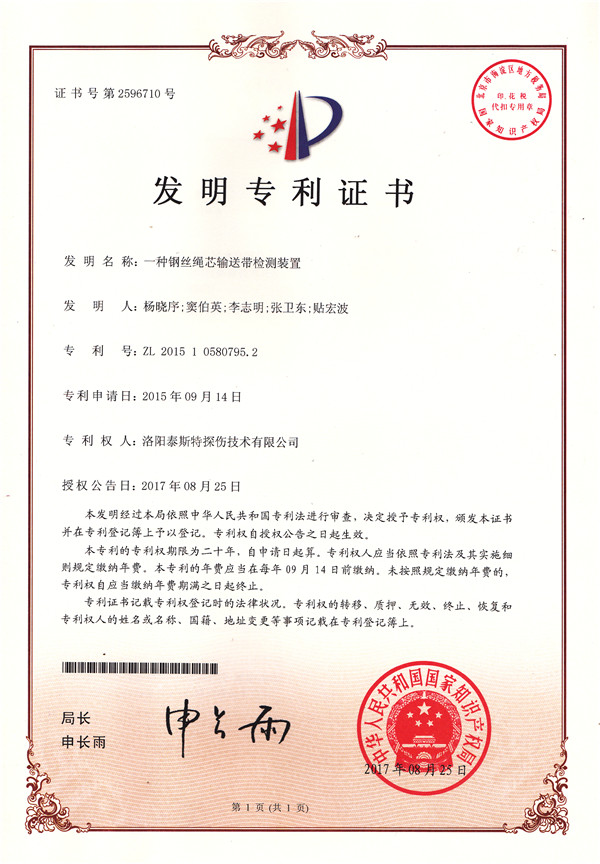 金秋碩果盈滿枝,洛陽泰斯探傷技術有限公司(簡稱TST)喜獲知識產(chǎn)權(quán)局頒發(fā)的四項發(fā)明利證書,分別是: